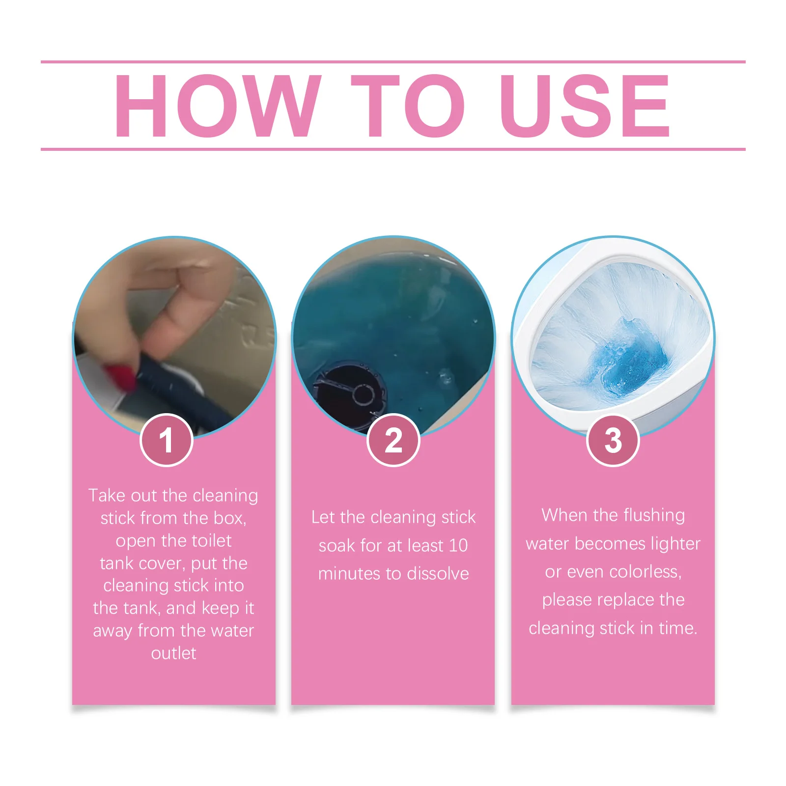 Easy to Use: Simply place a stick into the toilet water tank, and it will automatically work every time it flushes, without the need for scrubbing or extra effort
